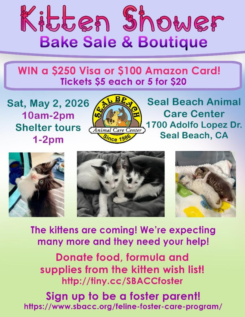 The Seal Beach Animal Care Center (SBACC) was founded in 1986 by a group of kind and concerned citizens who wanted a local no-kill shelter for dogs and cats. SBACC is the only animal shelter in Seal Beach. It is located next to the Seal Beach Police Station at 1700 Adolfo Lopez Drive. It is operated by over 100 volunteers and 20 staff and has saved over 20,000 animals in the past 38 years. SBACC is a California non-profit 501(c)3 Corporation, EIN #33-0192138. Donations made to SBACC are tax deductible, with the largest share going directly toward the care of our dogs and cats.