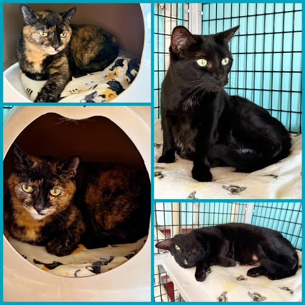 Hi, I’m Charcoal.  My sister, Ember, and I were squished into tiny carriers and abandoned on someone’s porch.  The person who found us brought us to SBACC.  I was already neutered and have a microchip, but it was never registered to anyone, so we’re both looking for a forever home.  We were both scared at first, but now enjoy pets and purr in response.  I’m a playful boy, but I’m still adjusting to life at SBACC.  Hopefully, I’ll soon find my forever home, maybe even with Ember. She’s in one pic with me.