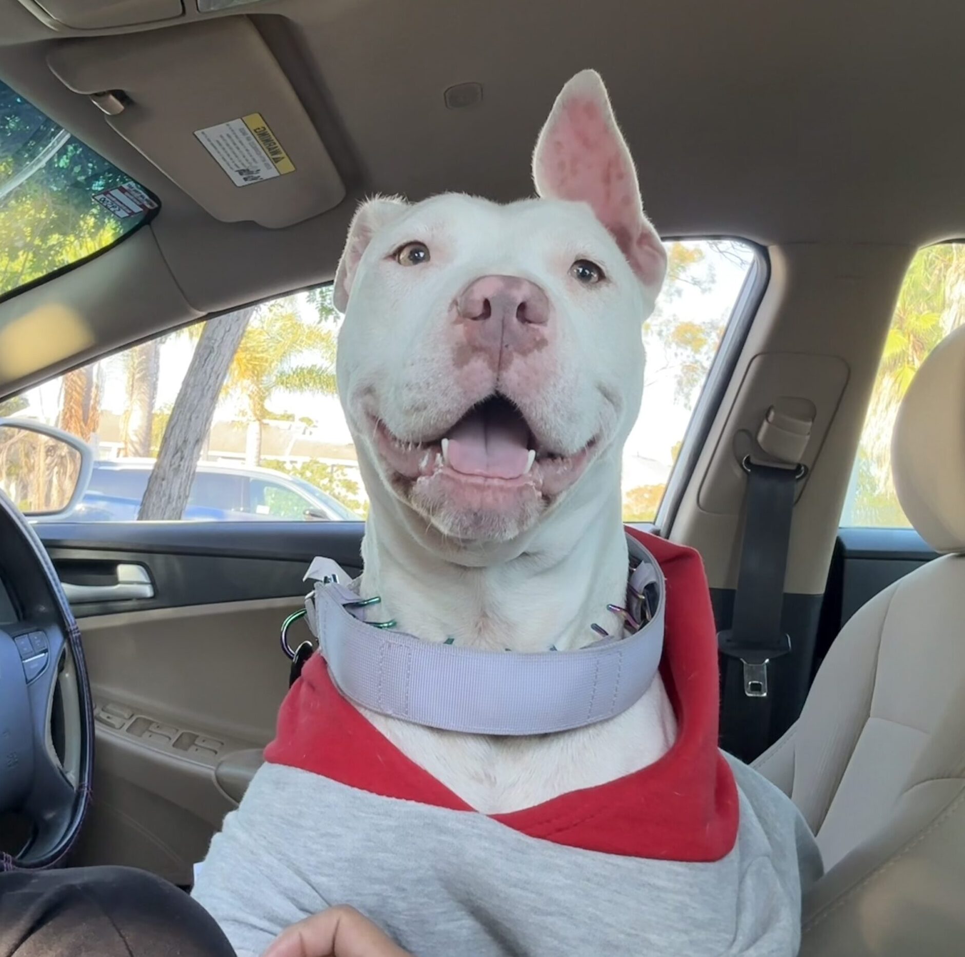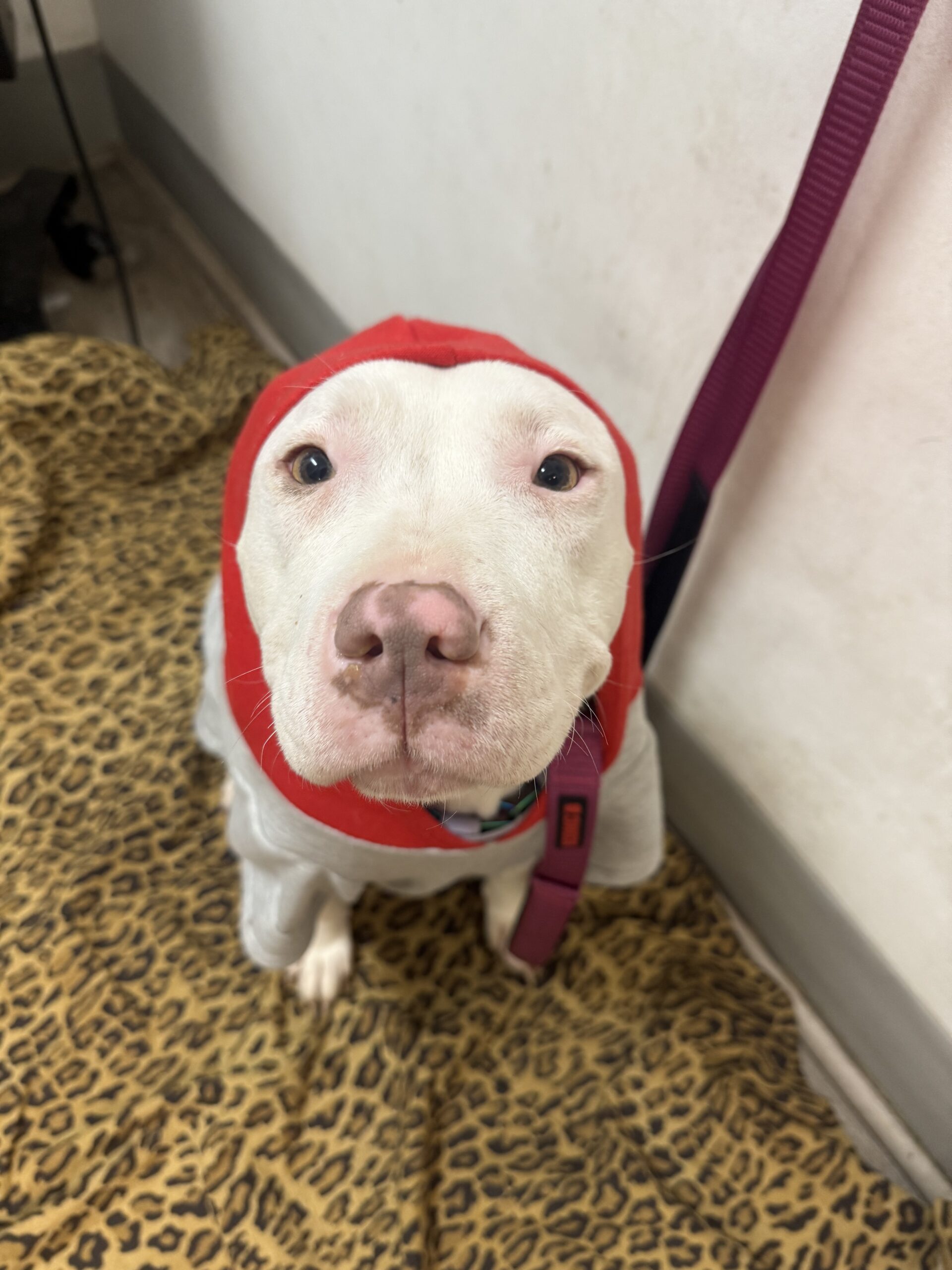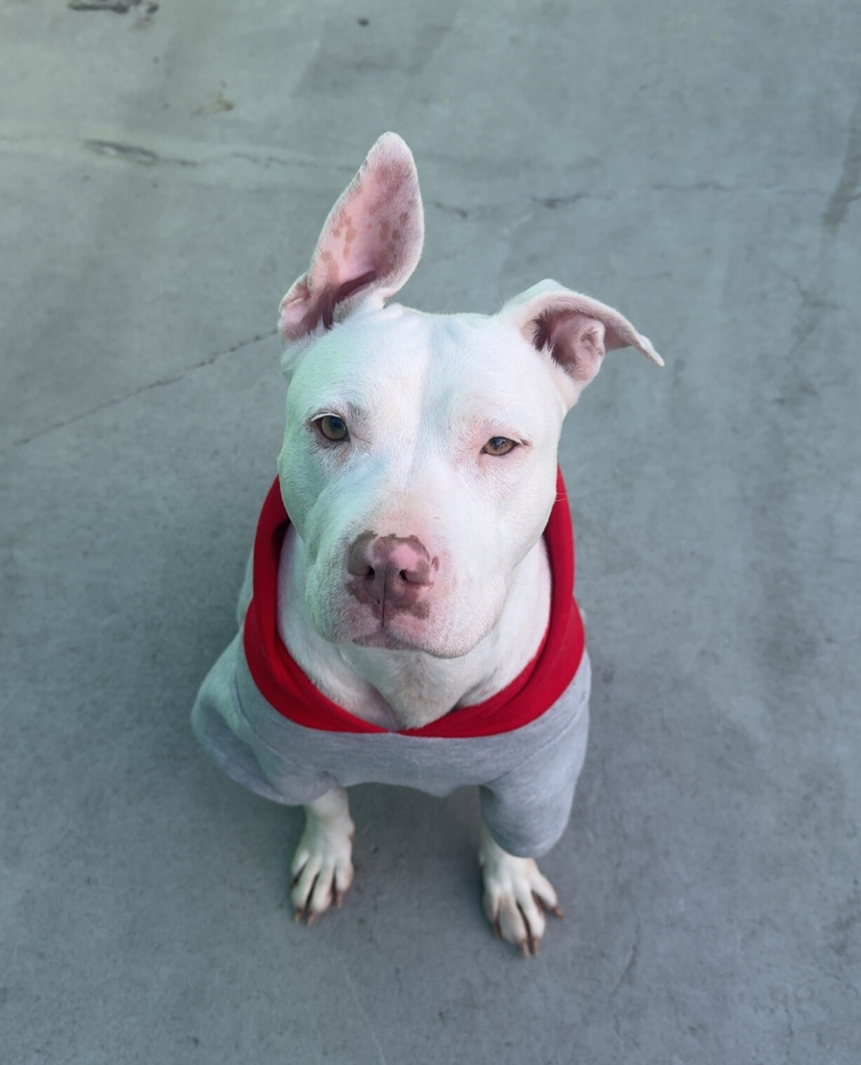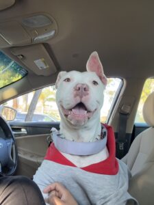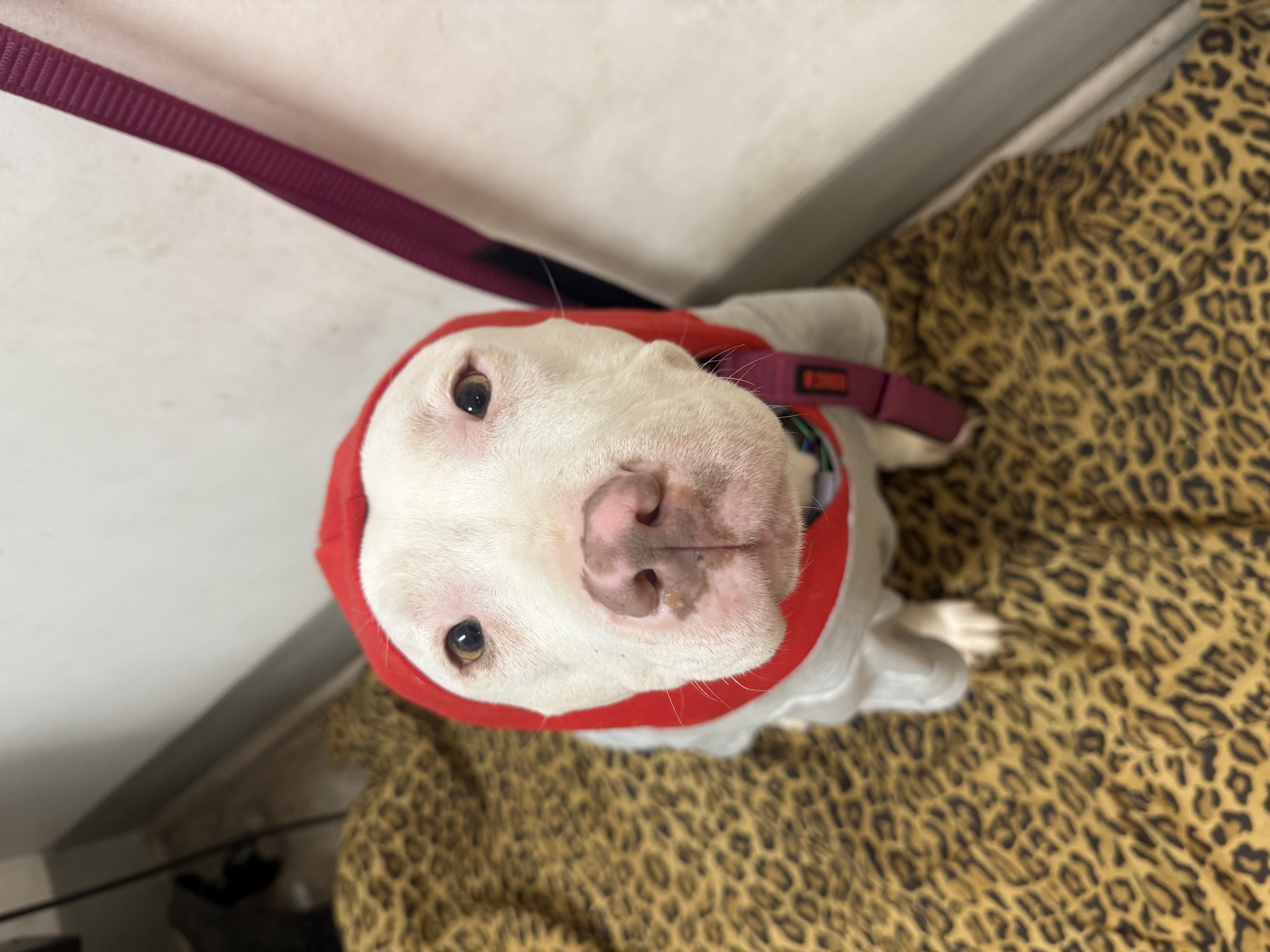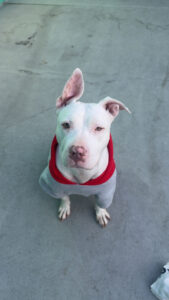 Cloud is incredibly loving and affectionate. She does great with kids, people, and other dogs. She is deaf, but that doesn’t slow her down at all, she already knows a few commands and is very smart and eager to connect with her people.