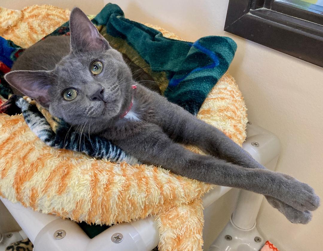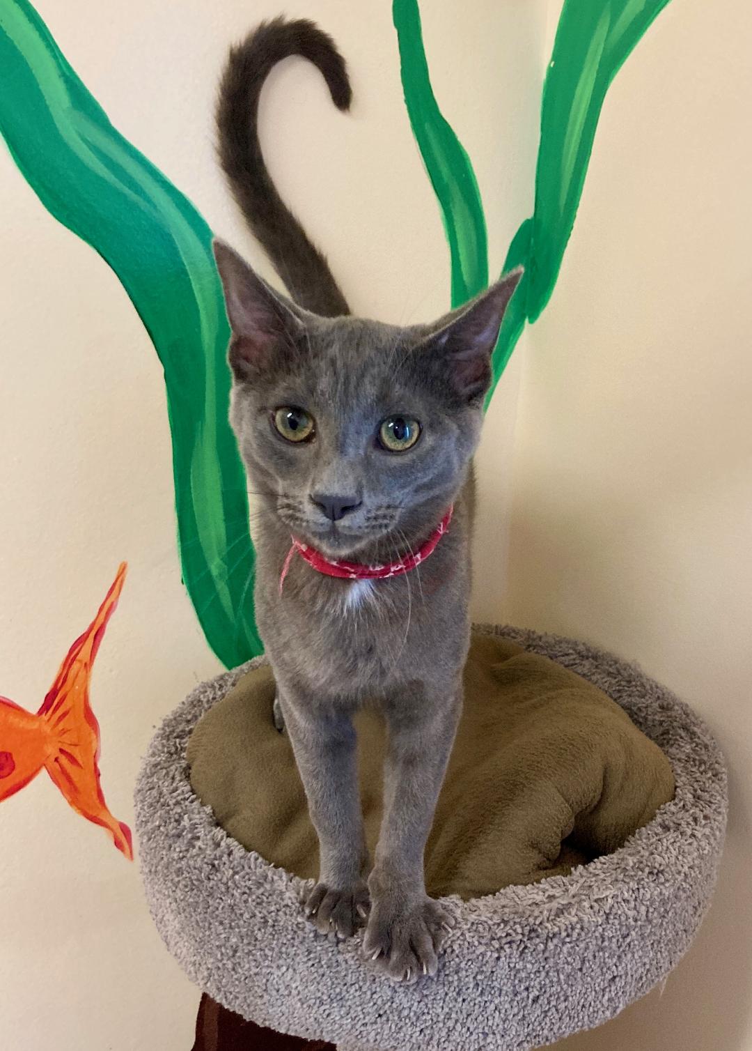 Hi, I’m Flash. My two sisters and I were just two days old when we were found in the bushes in front of an apartment complex. We were super tiny and barely alive. One of my sisters didn’t make it, but Figgy and I did. After coming to SBACC, we went to a foster home where we were syringe-fed and then bottle-fed. We also got lots of love and attention and grew really fast. I’m very friendly, I love to run and play, and I am a really good jumper. My foster Mom says I’m very sweet and will be a lap kitty when I’m a little older and not so busy playing. When I take a nap or a little rest, I love to be petted and held. There were some grown-up cats in my foster home, and we got along just fine. I am ready for my forever home now, and my foster mom says I must go with another kitten or young cat so that I’ll always have somebody to play with. I’m with my sister, Figgy, in one pic. She has found her forever home, but I’m still waiting.