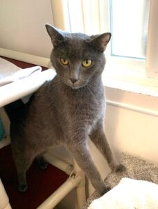Hi, I’m Hermes. My sister, Hera, and I were rescued from the street by an SBACC volunteer when we were three months old. We were very scared and not used to being around people. My sister became braver than I and found her forever home. I’m still shy around people, but have made friends with several of my roommates and am pretty comfortable here at SBACC. I would like to go home with another cat and someone who has lots of patience and will give me plenty of time to adjust to my new life.