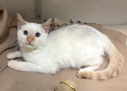 Hi, I’m Bliss. I was 10 weeks old when I was rescued from nearly drowning during a Christmas storm. I’m a friendly and talkative kitten who loves attention. I’m also quite handsome and I’m told that I’m very sweet. I’m also good with being picked up and held and found my home the first day I was available!