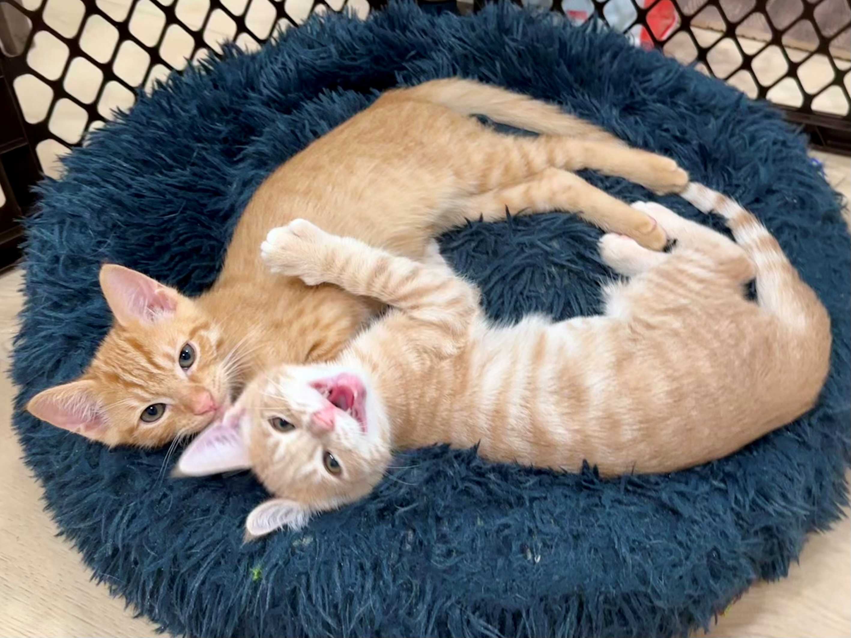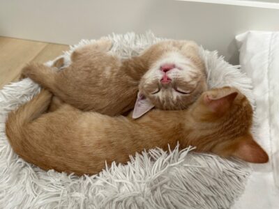 Hi, I’m Coby. My sister, Chanel, and I, along with three other siblings, were born to a feral Mama in someone’s yard. Our Mama took care of us for about a month, but then she disappeared. The nice people whose yard we were in took us into their home and took care of us until we were nearly two months old. They found homes for everyone but Chanel and me, so they brought us to SBACC. My foster Mom says my sister and I are both sweet, affectionate lap cats. We are very bonded and do everything together, so we really need to go to our forever home together. I may be a little shy at first, but I’m a very curious and playful kitten looking for a quiet and loving home with my sister. I got along great with the grown-up cats in my foster home. I’m a very social kitten and love to be with my human and feline friends.