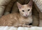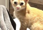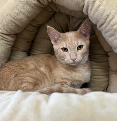 Hi, I’m Emily. My two sibs and I came to SBACC in our Mama’s belly and were born 5 days later in her foster home. We have never spent a day on the street and were cared for and loved by both our Mama and our foster Mom. I’m the shy one in my litter and may run and hide from someone new. I need time to warm up to new people, but once I get to know you, I will enjoy petting and playing. I’m now ready for my forever home and may do ok as a single kitten, but I think I may do better if I had a furry buddy, maybe my sister or even another kitten or young cat. That’s my sister, Eloise, with me in one pic.