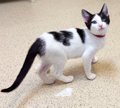 Microchipped, current on basic vaccinations, rabies and leukemia not included.