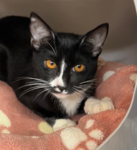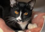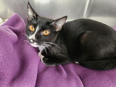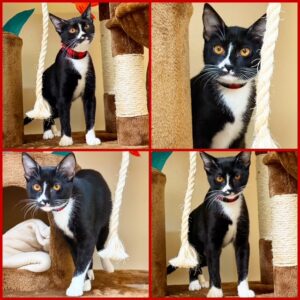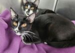 Hi, I’m Genesis.  My three sisters, three brothers, and I were living in an alley and being fed by a very nice lady for nearly a month.  She wanted a better life for us, so she gathered us all up and brought us to SBACC.  I’m friendly and playful, and I’m sure to be a purrfect pet.  Come meet me and think about taking me home with you.  I know you won’t be sorry. I’m with my sister Godiva in one pic.  It would be extra special if we could go home together.