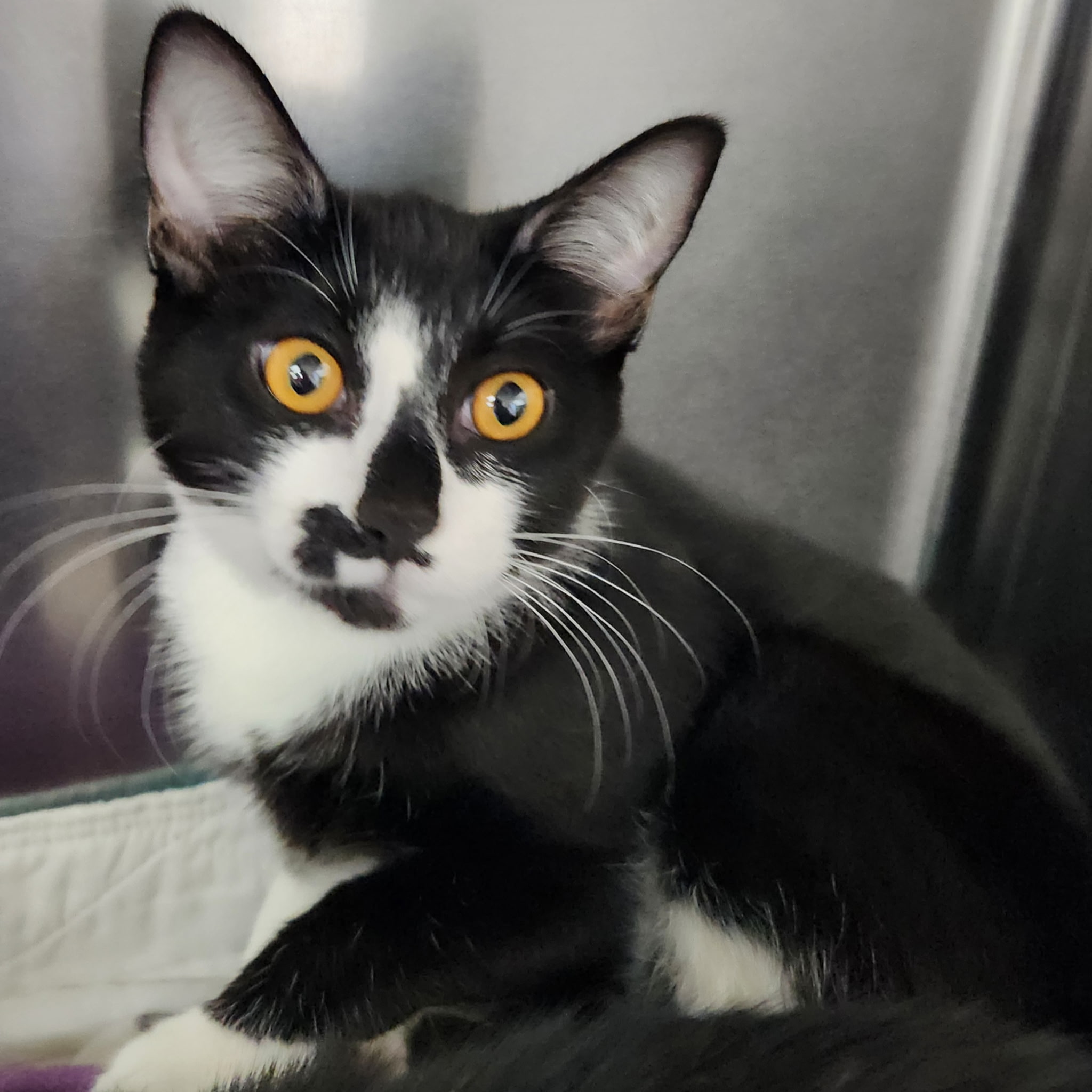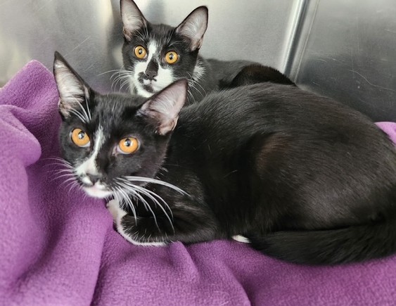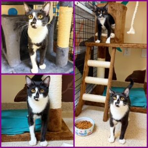 Hi, I’m Godiva. My three sisters, three brothers, and I were living in an alley and being fed by a very nice lady for nearly a month. She wanted a better life for us, so she gathered us all up and brought us to SBACC. I’m friendly and playful, and I’m sure to be a purrfect pet. Come meet me and think about taking me home with you. I know you won’t be sorry. I’m with my sister Genesis in one pic. It would be extra special if we could go home together.