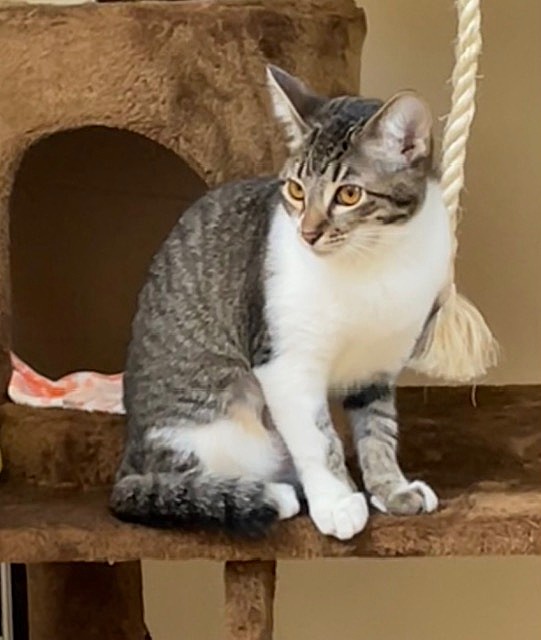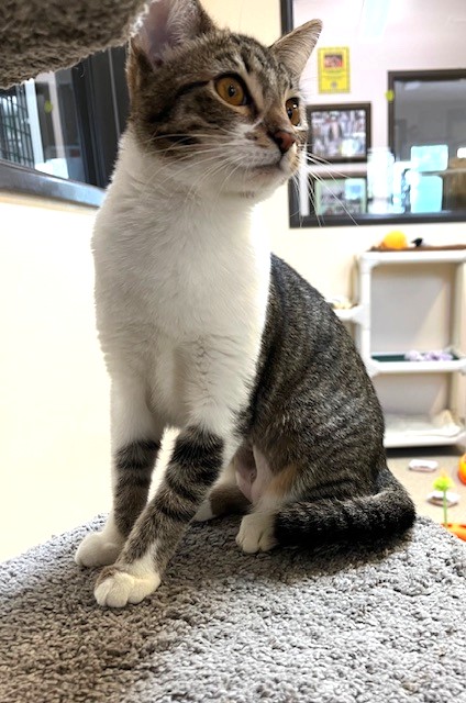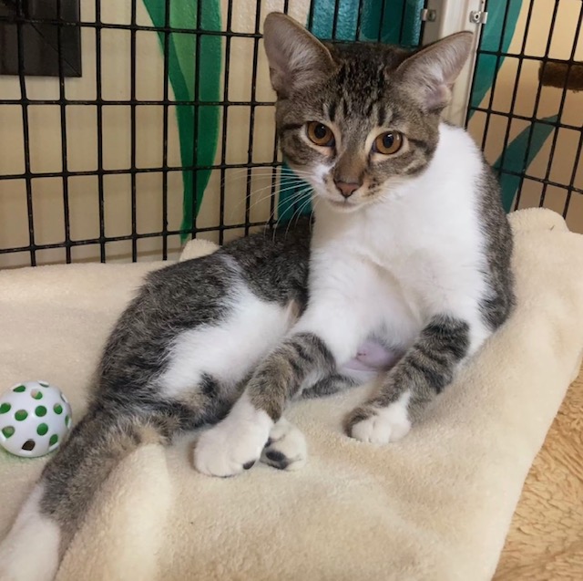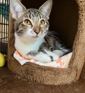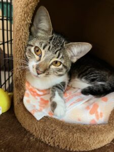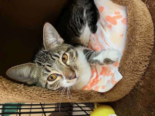Hi, I’m Gum-Drop. My three sisters, three brothers, and I were living in an alley and being fed by a very nice lady for nearly a month. She wanted a better life for us, so she gathered us all up and brought us to SBACC. I don’t look like any of my sisters or brothers; I’m the only one who isn’t black and white. I’m friendly and playful, and I’m sure to be a purrfect pet. Come meet me and think about taking me home with you. I know you won’t be sorry.