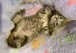 I’m very playful & energetic! I zoom & zip around the house and play with every toy and tunnel & climb every cat tree in my path – I’m also a really good wrestler. Sometimes I get a bit too serious with my wrestling moves – usually because I’m overtired – but a two-minute “time out” or being held in my foster Mama’s arms helps calm me down to where I can play gently again.