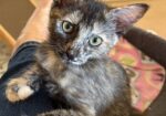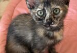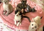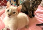 Hi, I’m Yo-Yo. My four sibs and I were born in an attic. Our Mama disappeared when we were about 2 1/2 weeks old, and we were brought to SBACC. We then went to a foster home where we were bottle-fed until we could eat on our own. This is what my foster Mom says about me. “Kitten Yo-yo is full of fun and a very happy kitten. I often find her in her favorite bed on the desk, enjoying the sun. She loves to snuggle and fall asleep in my lap. Once she is rested, she is ready to go. She runs, jumps, chases, and wrestles with her siblings. They all play well together, but not roughly. Everything is a toy. If it moves, she goes after it, even her siblings’ tails. She is loving, gentle, sweet, and very affectionate. She has a lot of kitten energy, so she will do best in a home with another kitten or young cat.” I’m with my brother, Yosemite, in one pic and with all my sibs in another.
