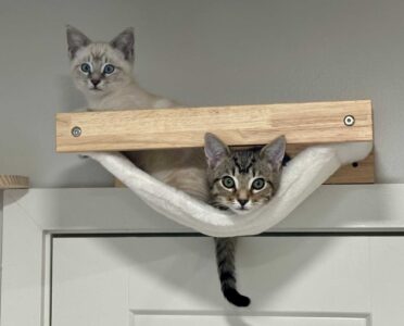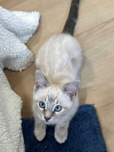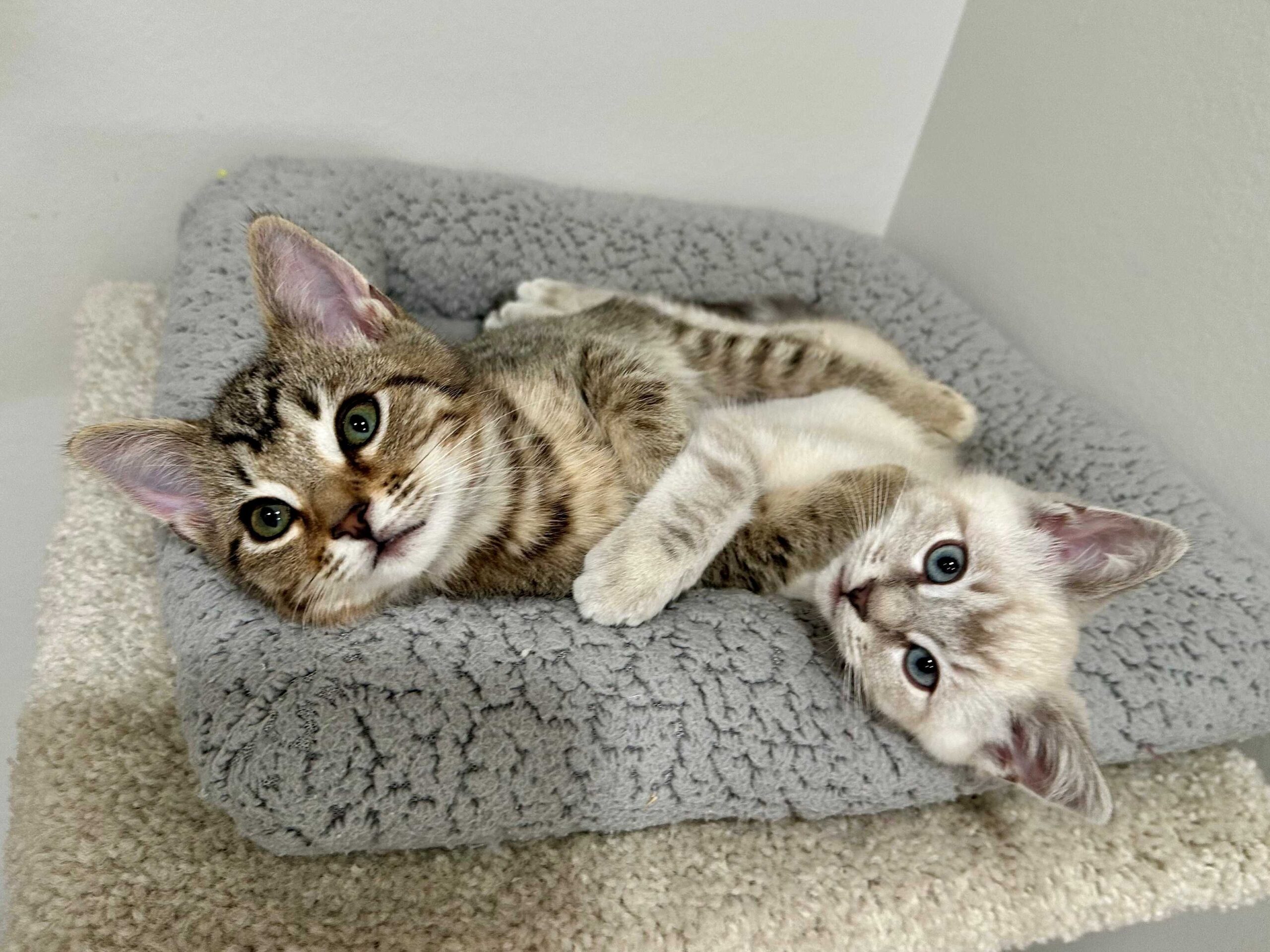 Hi, I’m Yolo. My brother, York, and I were rescued from a yard when we were 4 weeks old. We came to SBACC and then went to a foster home to get big and healthy and ready for our forever home. I’m a friendly, affectionate, and playful kitten. I love to run around and play with my brother, and my foster Mom says I am great with the grown-up cats at my foster home. I get so excited when playing with the mouse-on-a-wire toy that I will chirp at it. My brother, York, and I are a bonded pair, so we need to go to our forever home together. You can see us together in two of the pics.