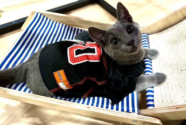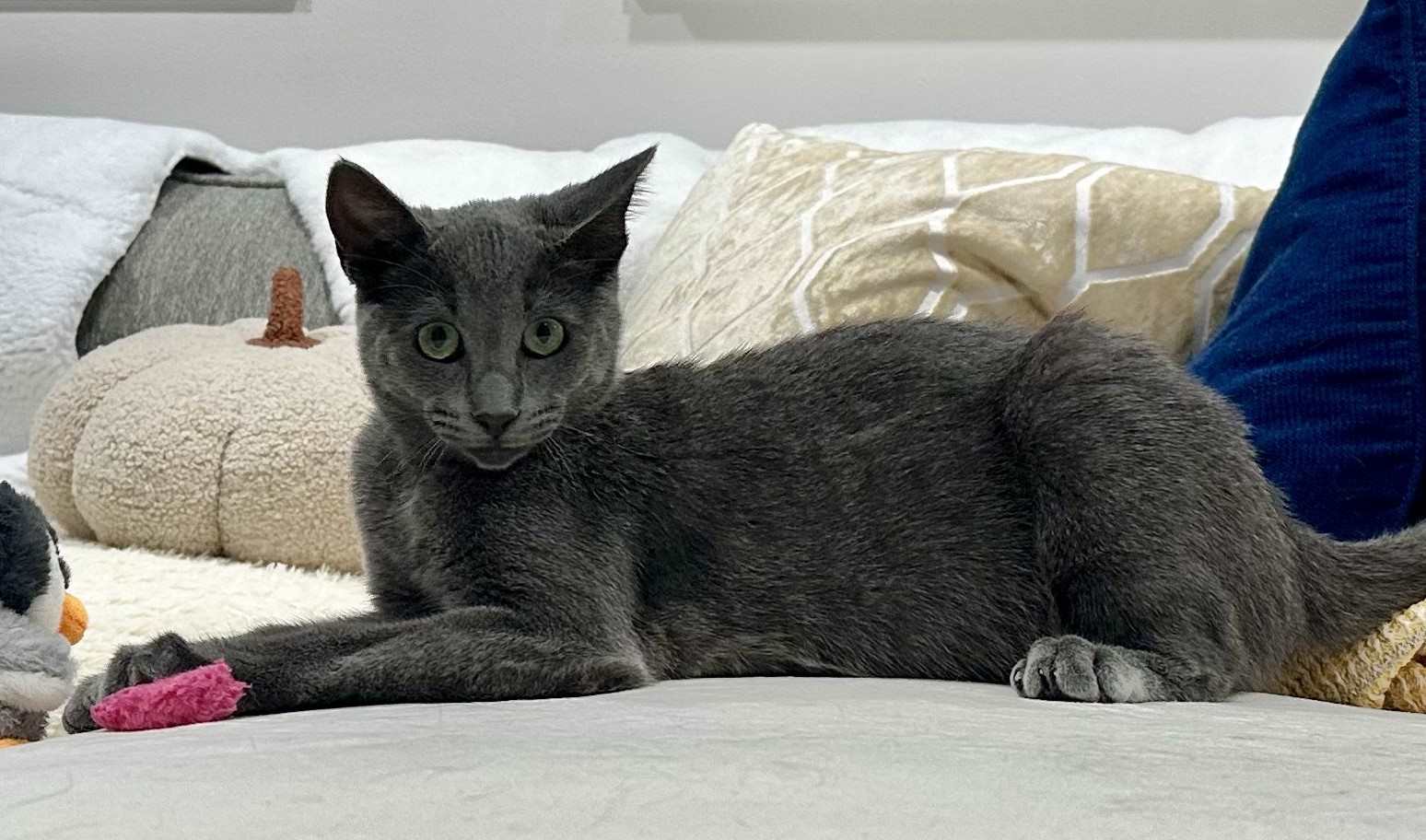 Hi, I’m Zydeco. I was discovered by the resident dogs in a backyard. The finder was so worried about me that they brought me to SBACC, where I was able to recover from mange, intestinal parasites, and gain some much-needed weight. My foster mom says that I am the perfect kitten, full of love and energy. I enjoyed playing with the adult cats at my foster’s house; the younger two were able to keep up with my kitten energy quite nicely. Sometimes I can be shy, but with encouragement, I will gladly be the center of attention. I’m a very social lap kitty and would love to find a home with another cat or kitten and a family that gives me all the love and attention I crave.
