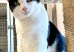Hi, I’m Lemore. I was hanging around a nice yard and delivered three kittens there. I lost one of my kittens but when I was rescued with the other two, the man who found us also found another kitten without a Mama. She was just about the same age as my two kittens and I adopted her as my own. The kittens were about two weeks old when we came to SBACC and then went to a foster home. About two weeks later, my foster Mom got another motherless kitten and started to bottle-feed him, but I decided to adopt him, too and let him nurse with the other three. My foster Mom says I was the best Mom ever but I’m all done with that now — no more babies for me. I’m a gentle, friendly, and affectionate young cat who loves laps and will purr and purr when I’m petted. I also love toys and can play like a kitten. However, I’m not a big fan of other cats, so I would probably do best as an only cat. One more thing I need to tell you. I’m FIV+. It’s not that big a deal. Despite what many people think, cats with FIV can live long, healthy lives, and it’s not contagious. It can’t be transmitted from cat to cat by sharing food, water, or litter boxes. My foster Mom says I deserve to be loved and spoiled in a home of my own.
