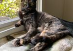 Hi, I’m Mia. I was roaming the streets and taken in by an older couple, but they had serious health issues and couldn’t keep me. Their daughter, who is blind, couldn’t take care of me either, so she brought me to SBACC. I was limping, and when the vet checked me out, it was discovered that I had a luxated hip and ruptured cruciate ligament and needed surgery. I am still recovering from my surgery and need physical therapy, but despite all this, my foster Mom says I have a bunch of personality! I’m also very brave and adjust quickly to new situations and people. My favorite things are playing in tunnels, catching wand toys, and napping on laps. I’m the luckiest kitty, because my foster Mom decided to adopt me and love me forever!