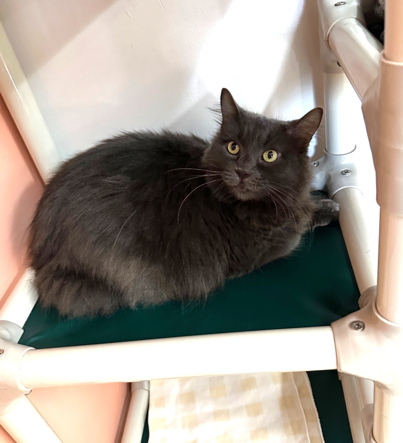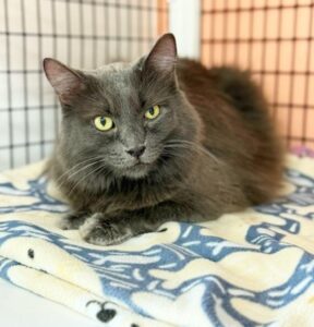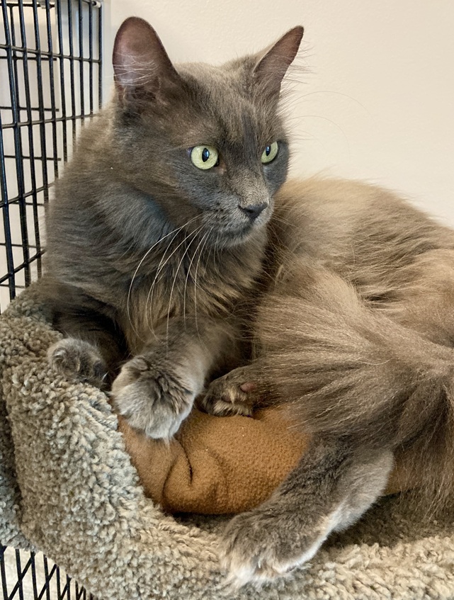 Hi, I’m Penny. I came to SBACC as a kitten and was adopted at three months old. I had a home for over five years, but things weren’t going well, and I was returned. It took me a while to feel comfortable back at SBACC, but I’ve adjusted and am getting back to being a friendly girl. I’m not really a fan of the other cats in my room, so I keep to myself and sometimes don’t use the litterbox to avoid them. But I do enjoy attention and pets, and in the right home without a bunch of other cats, I think I’ll do fine! I have a very soft, fluffy coat, and I’m told I’m a very pretty kitty. I hope to find a home with a Mom or Dad or a family who will love me forever.