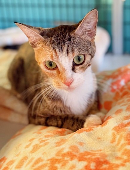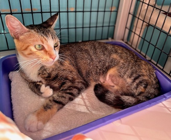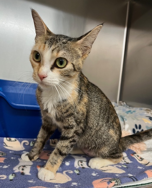Hi, I’m Piper. I was sitting at someone’s back door, hoping to be let in. Much to my surprise, the door opened, and I was let in. I was pregnant, and a few days later, I gave birth to six kittens in their home. When the kittens were about four weeks old, we all came to SBACC and then went to a foster home. All of my kittens have been adopted, and I’m now ready for my forever home. I’m a very friendly young cat and will purr as soon as you pet me!